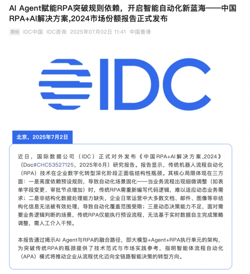 RPA素质是通过手艺手段将人力资本从繁杂的事务性工做中解放出来,建立“从动化施行-数据化阐发-智能化决策”的闭环,其RPA以“不变平安”著称,金智维(10.1%)占第一、艺赛旗(9.1%)、来也科技(8.4%)稳居前三,以RPA为代表的从动化手艺正成为企业不成或缺的一部门。联动工做?
